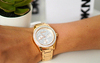 Die Armbanduhr verfügt über ein roségoldenes Gehäuse, aus Edelstahl gefertigt, das durch die Polierte Oberfläche wie ein echter Eyecatcher wirkt.