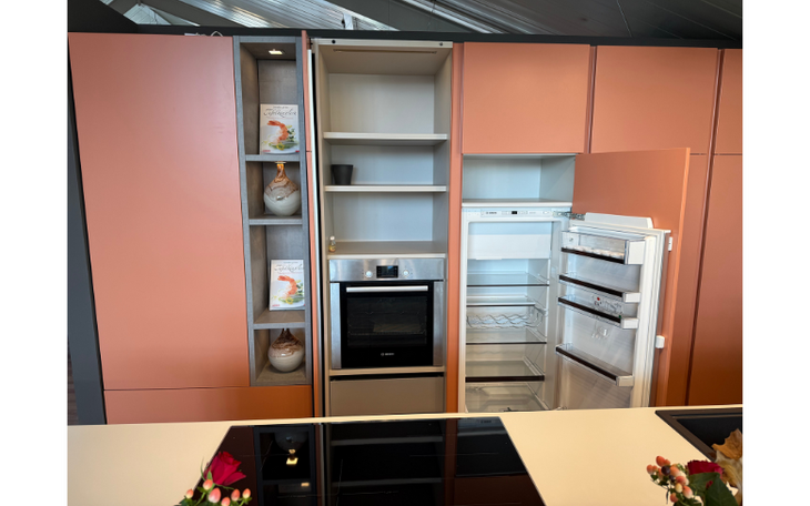Die großzügige Planung mit ca. 3.590 mm Küchenzeile und Insel (3.600 x 1.200 mm) schafft Raum für Genuss und Begegnung. Mit einer komfortablen Arbeitshöhe von 910 mm wird Kochen zum echten Vergnügen.