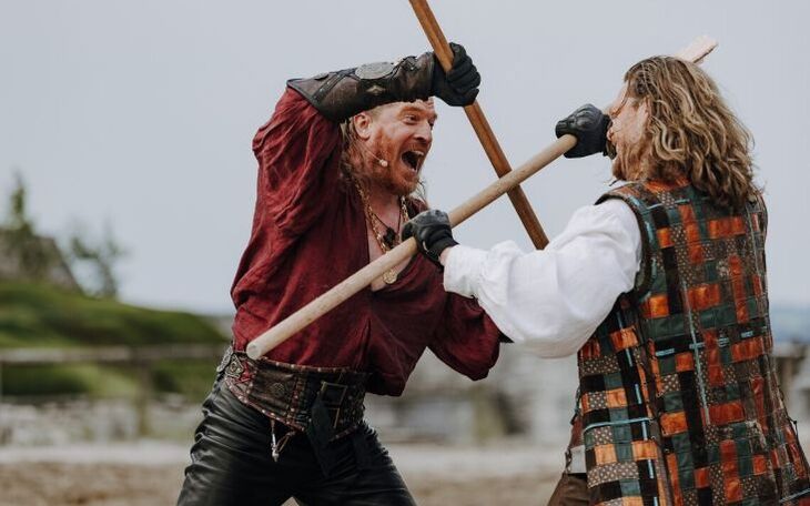 Erleben Sie zur Begrüßung einen Rundgang über das Gelände der Störtebeker Festspiele mit einem Meet and Greet mit den beiden Hauptdarstellern des Stückes "Likedeeler". Sie sitzen in der Preisgruppe I und erhalten eine Ausstattung von zwei Sitzkissen, einer Decke und zwei Regenponchos.