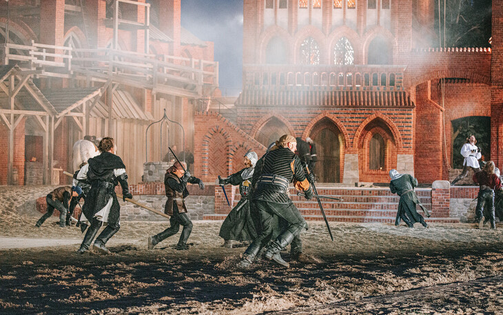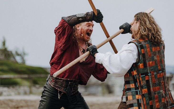 Erleben Sie zur Begrüßung einen Rundgang über das Gelände der Störtebeker Festspiele mit einem Meet and Greet mit den beiden Hauptdarstellern des Stückes "Likdedeeler". Sie sitzen in der Preisgruppe I und erhalten eine Ausstattung von zwei Sitzkissen, einer Decke und zwei Regenponchos.